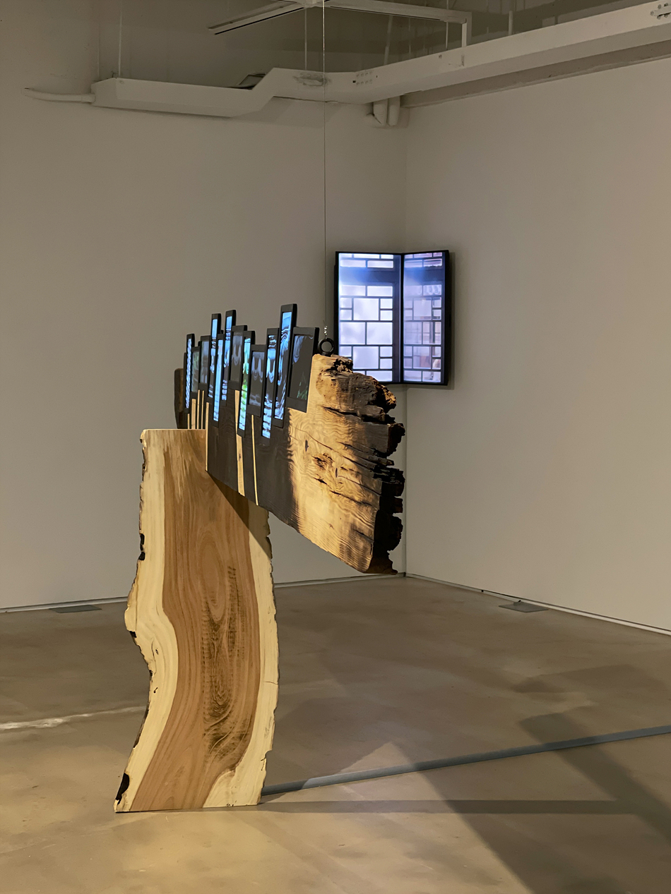 근래 본 미디어 아트 중에서 가장... 디스플레이가 가진 물성의 한계, 그러니까 어찌해도 결국 사각형태라는 한계를 가장 벗어난 작품이라는 느낌을 받았다.