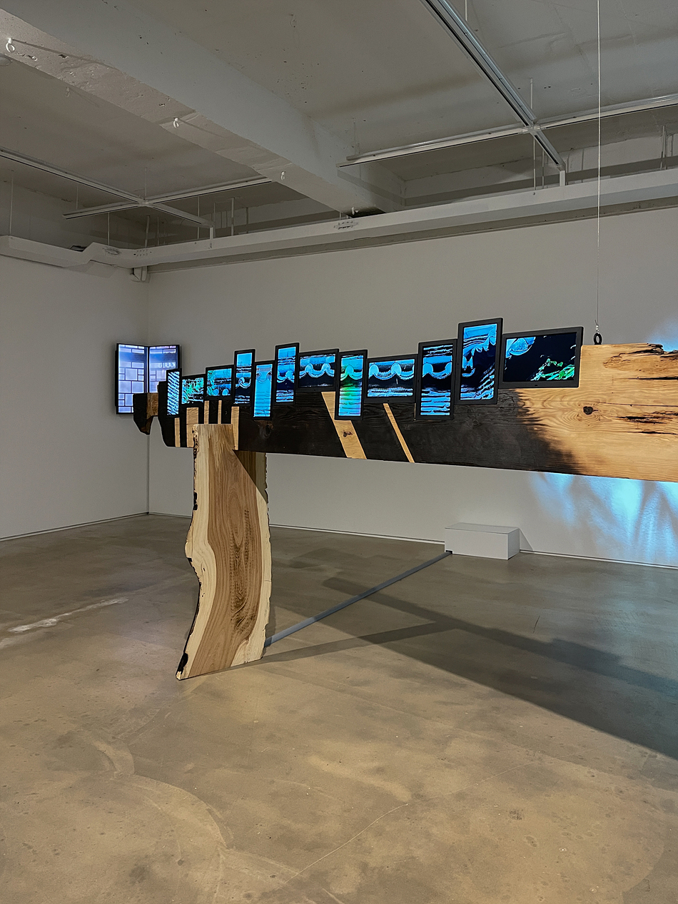 근래 본 미디어 아트 중에서 가장... 디스플레이가 가진 물성의 한계, 그러니까 어찌해도 결국 사각형태라는 한계를 가장 벗어난 작품이라는 느낌을 받았다.